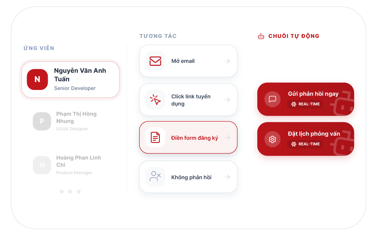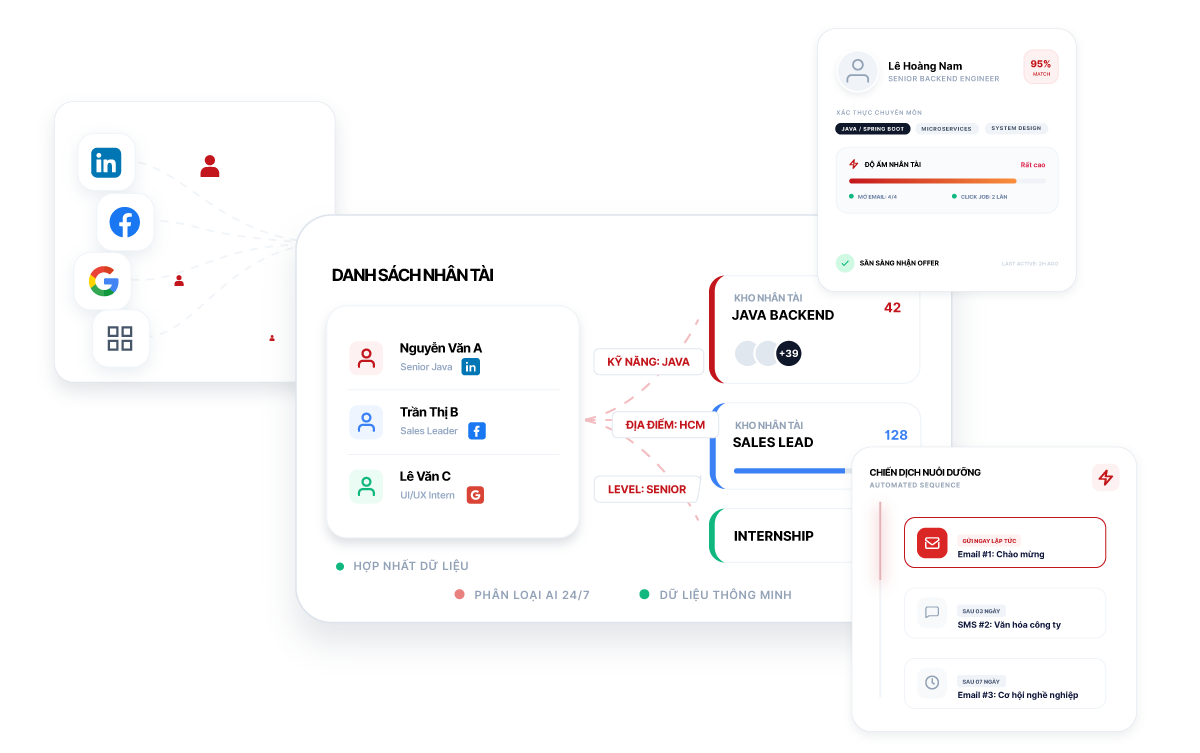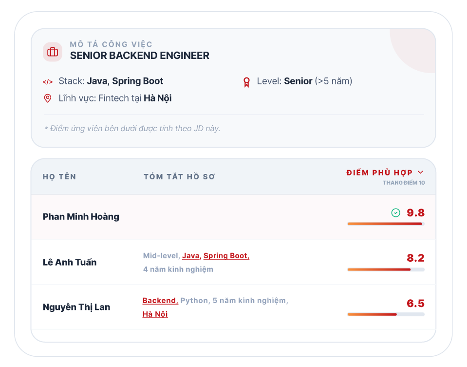 Chỉ cần nhập tên vị trí, AI sẽ tự động đề xuất bộ khung năng lực chuẩn chỉnh nhất cho vị trí đó: từ kỹ năng cứng, kỹ năng mềm đến các công cụ chuyên môn cần thiết. Bạn sở hữu một bản JD chuyên sâu như được viết bởi một chuyên gia trong chính lĩnh vực đó.