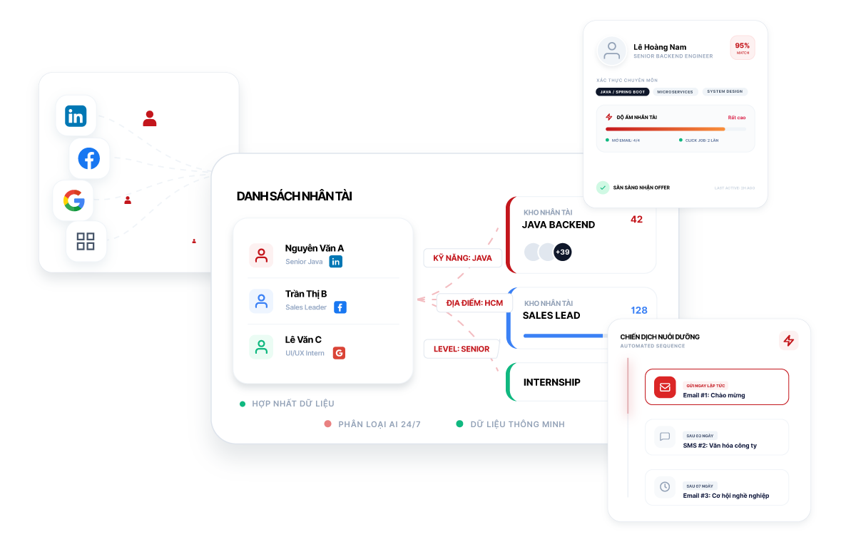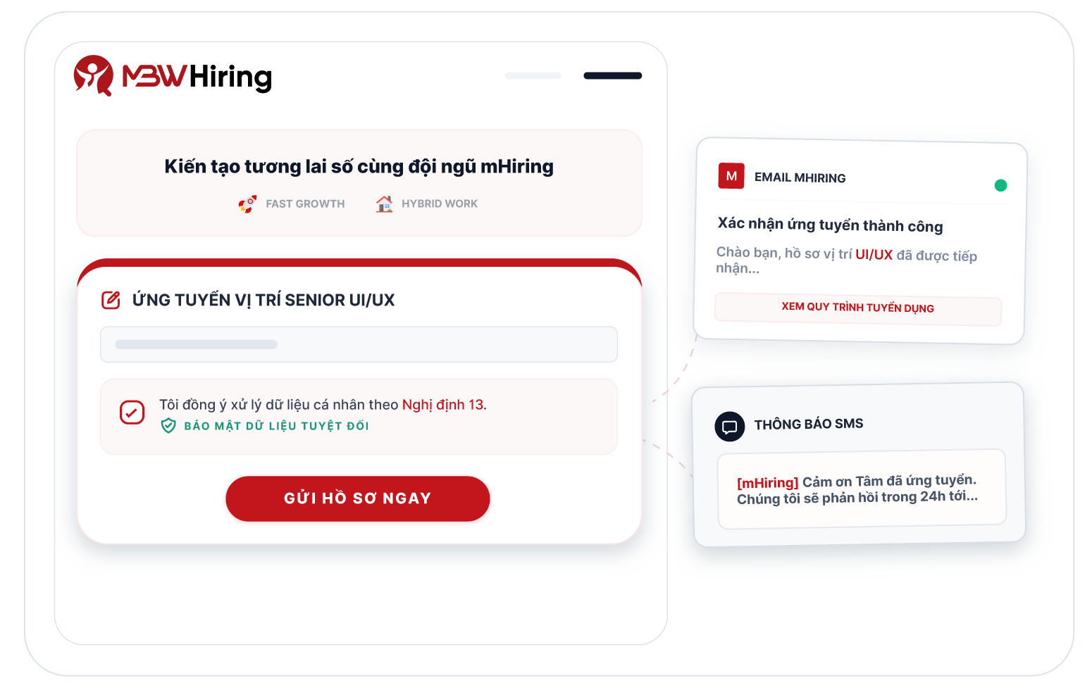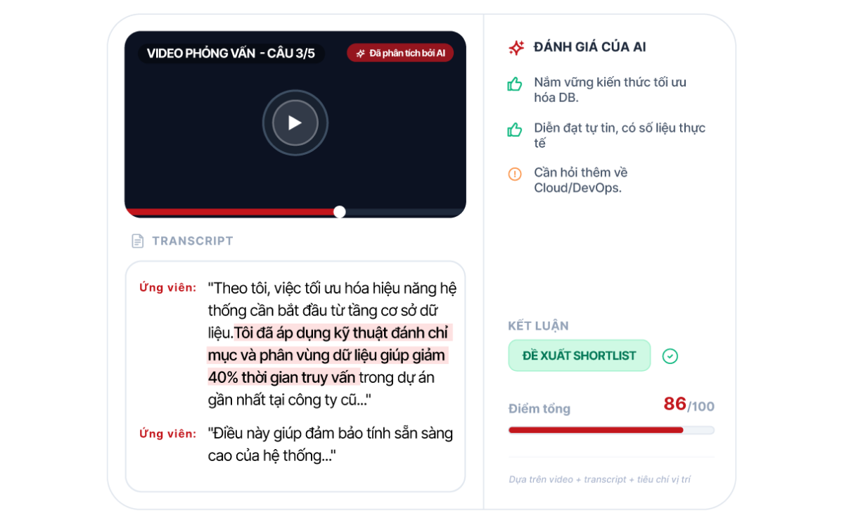 Chỉ cần nhập tên vị trí, AI sẽ tự động đề xuất bộ khung năng lực chuẩn chỉnh nhất cho vị trí đó: từ kỹ năng cứng, kỹ năng mềm đến các công cụ chuyên môn cần thiết. Bạn sở hữu một bản JD chuyên sâu như được viết bởi một chuyên gia trong chính lĩnh vực đó.